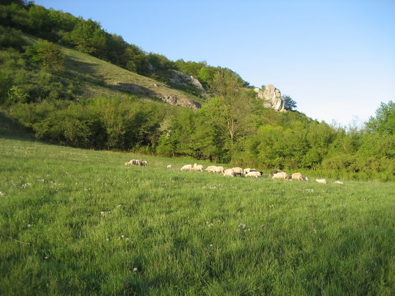 In Keilberg weidet eine gemischte Herde aus Waldschafen, Coburger Fuchsschafen und Bündner Strahlenziegen.